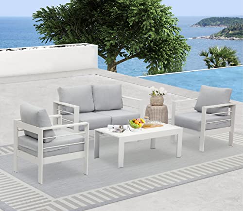 Click for More Images ??UPGRADED ALL-ALUMINUM FRAME?Our modern patio furniture set is crafted with upgraded premium all aluminum, which is both strong and durable, unlike iron sofas on the market.The surface of aluminum naturally forms an oxide...