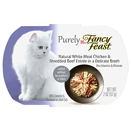 Delight your cat's discerning palate when your serve her a tray of Purina Fancy Feast Purely Natural White Meat Chicken & Shredded Beef Entree in a Delicate Broth wet cat food. With a blend of real, hand-selected ingredients you can recognize,...