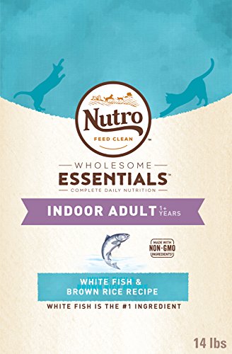 NUTRO WHOLESOME ESSENTIALS Indoor Adult White Fish & Brown Rice Recipe Cat Food always starts with great-tasting white fish and contains a unique blend of whole grains. This natural cat food provides natural fiber for healthy digestion and...