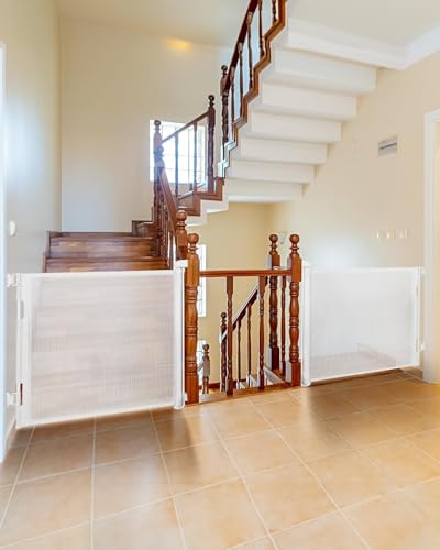 Click for More Images 2 Pack Baby Gate Retractable Gates.SUPERIOR DESIGN RETRACTABLEBABY GATE : This Extra Wide Outdoor Retractable Gate extends up to 55" wide and is 33" tall. The maximum width of opening is 55”,The best width of opening is...
