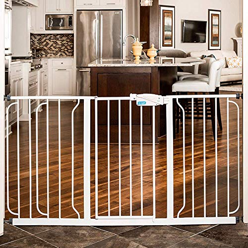 Click for More Images Perfect for children 6-24 months and great for pets tooGreat for doorway, hallway and bottom of stair use.The all steel design is durable and convenient with a walk-through doorExpands to stairways and openings between 29-56...