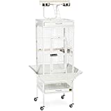 Click for More Images Wrought iron select cages offer quality craftsmanship at an affordable price4 Stainless steel cups, 2 wood perches, cage stand, playtop and rounded seed guards are includedHeavy-duty push button door lock keeps your bird...