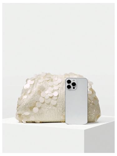 Click for More Images Stylish Pleated Design: This white purse features a stylish pleated flap design with sparkling green sequins, adding a touch of luxury and elegance to your evening attireDurable and Shimmering Materials: The sparkly clutch...