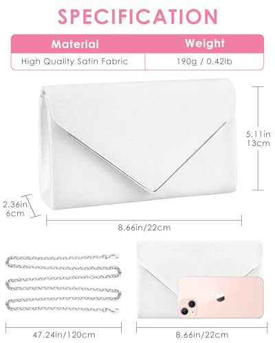 Click for More Images Elegant PU leather white clutch purse. With soft and durable satin lining.Edge Painting Process-Top handle clutch purses for women. Elegant process around the clutch.Removable chain 41 inch. Soft touch and light weight...