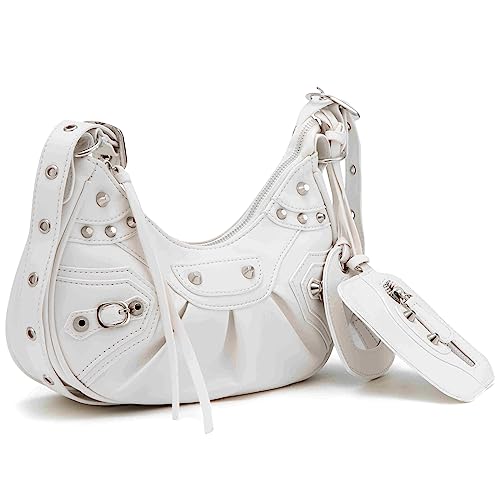 Click for More Images Detachable Zipper Pouch & Heart Mirror: This y2k punk purse is decorated with a zipper pouch that can store some cards and a cute heart shaped mirror.Soft & Durable PU Leather: This small shoulder bag for women is made of...