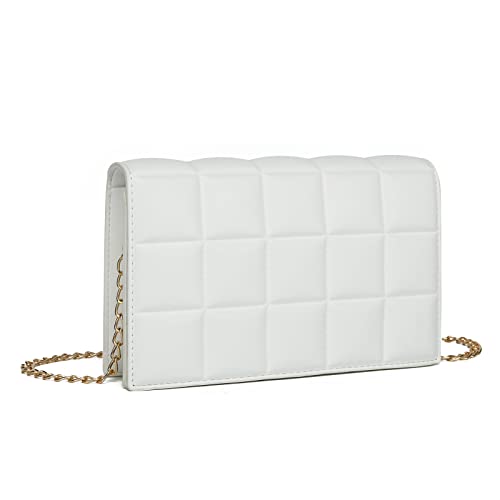 Click for More Images Women's clutch handbags: Faux leather material outer,Magnetic snap closure and Silver-tone hardware.White Clutch Purses for Women: 8.0" L x 5.0" H x 1.5" D, 0.6LB. Detachable chain strap with 23” drop.Small Crossbody...