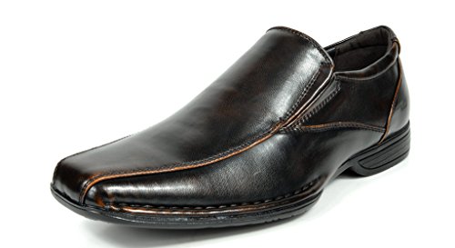 Bruno MARC GIORGIO Men’s Classic Square Toe Leather Lined Stretch Insert Slip On Dress Loafers Shoes