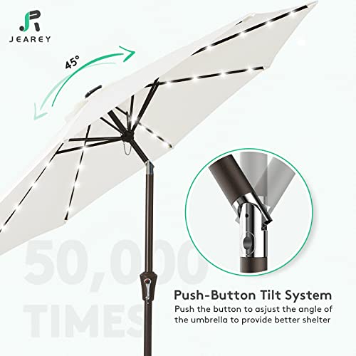 Click for More Images Solar-Powered Lights: Use it day and night. Patio umbrella with LED lights lasting for 6-7 hours. ON and OFF switch. Solar panel on top powered by rechargeable battery. No electricity or power cord needed. Energy efficient...
