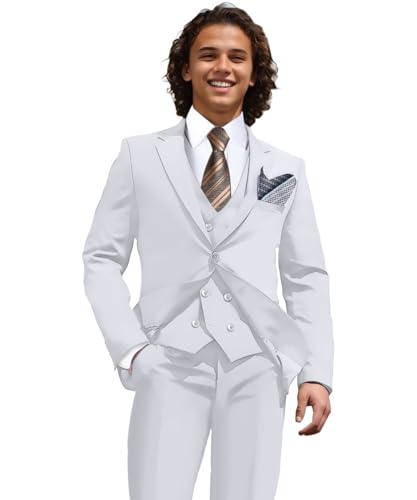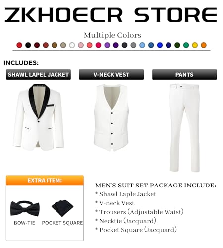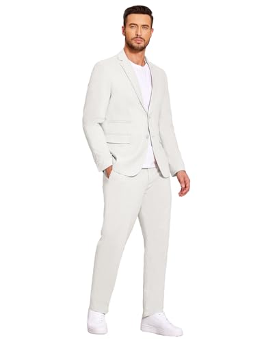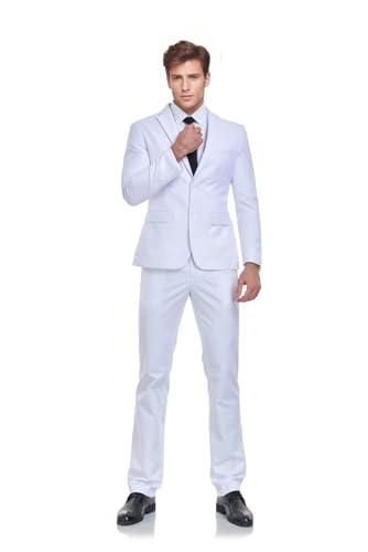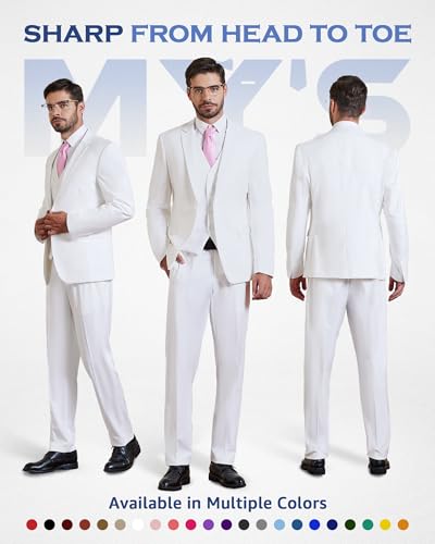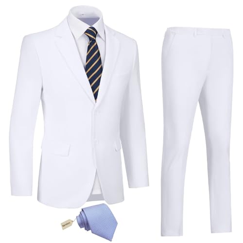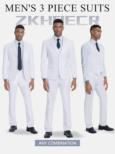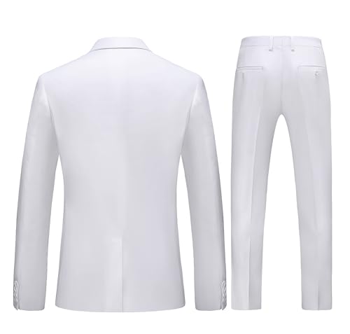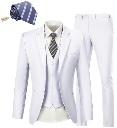 Men’s 3 Piece Slim Fit Suit, White Wedding Suits for Men Groomsmen Big and Tall Tuxedo Casual Suit M
