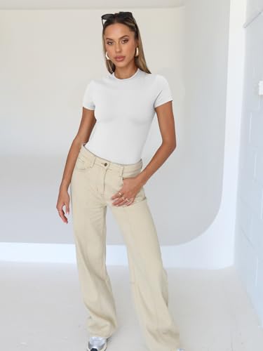 Click for More Images Please select your size according to size chart in the last image before orderingT shirts basic bodysuits for women. Pair with leather skorts, skirt, shorts or jeans,Tanga bottom bodysuits with snap button butt closureThis...
