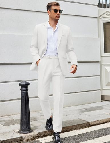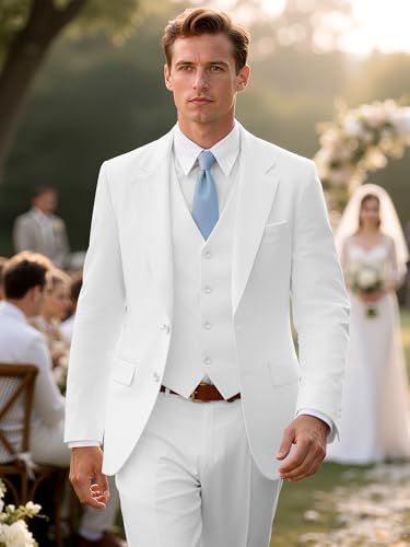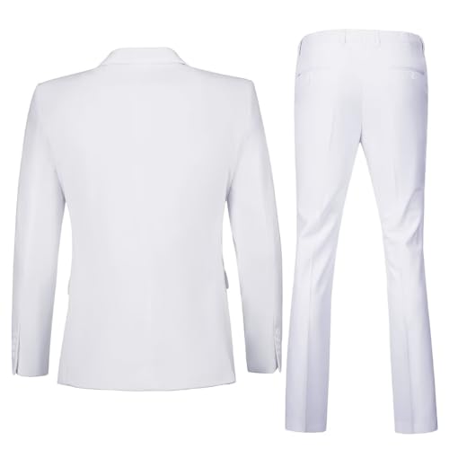 Men Suits Slim Fit,2 Piece White Suit for Men,Two Button Jacket Vest Pants Set,Men Tuxedo Suit Set S