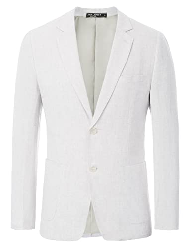 Click for More Images Features: Long sleeve, Notch lapel collar, Two-button closure, 2 open patch pockets, 1 chest pocket, 1 inner chest pocketClassic two-button linen blazer for men, made of lightweight and breathable material, perfect for...