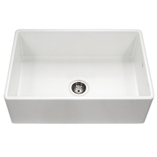 Houzer PTG-4300 WH Platus Series 33-inch Biscuit Apron-Front Fireclay sinks feature sharp corners with modern lines that add a European flair to contemporary kitchen designs with a traditional accent. Fired at high 2200 degrees Fahrenheit,...