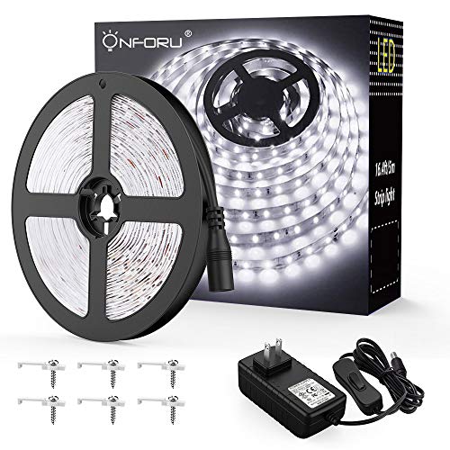 Features: Color: 6000K Daylight White Quantity of LEDs: 300 Length: 16.4ft (5 M) Wide: 0.31 in (8mm) Voltage: 12V Max Current: 1A Max Wattage: 12W UL Listed : Yes (Power Supply) Waterproof: NO Size of LEDs: 2835 LEDs PACKAGE CONTENTS: 1 x 16.4ft...