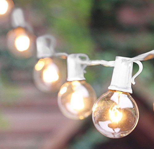 50Ft Outdoor Patio String Lights with 50 Clear Globe G40 Bulbs, UL Certified for Patio Porch Backyard Deck Bistro Gazebos Pergolas Balcony Wedding Gathering Parties Marquee Letters, cafe, markets and more. SPECIFICATION Voltage: 120V Bulb Type:...