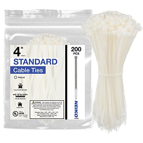 The Neiko 51259A Natural White Cable Tie Assortment comes with 200 pieces, each measuring at 4-inch with a loop tensile strength of 18 pounds. With an operating temperature of -40C/-40F to 85C/185F, the zip ties are perfect for indoor and outdoor...