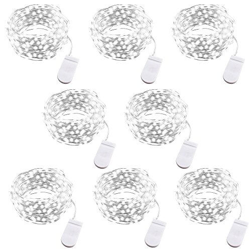 Specification: Power?1.8W LED Color: Cool White (6000K) LED Quantity: 30 Copper Wire Length: 10ft/3m Input Voltage: 3V Christmas string light is operated by CR2032 batteries (Included), set of 8 Decorative lights are waterproof, safety, durable...