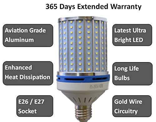 Click for More Images OUTPUT POWER : 40W (400 watt Equivalent) ; Input Voltage: AC 85V-265V; Warm White (3000K); Luminous: 4000lm; Lamp E26/E27. Bulb Dimension 6 x 3 inch.SAVE ELECTRICITY. BIG ENERGY SAVING - Save 90% electrical bill. It pays for...