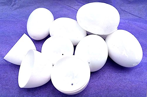 Package contains approx 50 eggs. Each egg is 2.25" Size and made of plastic. Comes separated as tops and bottoms (100 each) - need to put together. Great for easter egg hunt. You can add any small sized treats(not included) while snapping them...