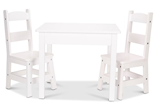 Pull one of the two durable chairs up to the child-size table-they're sized just right for kids, but strong enough to hold moms and dads, too! this sturdy wood table-and-chairs set comes in natural, white, or Espresso finish to fit with any home...