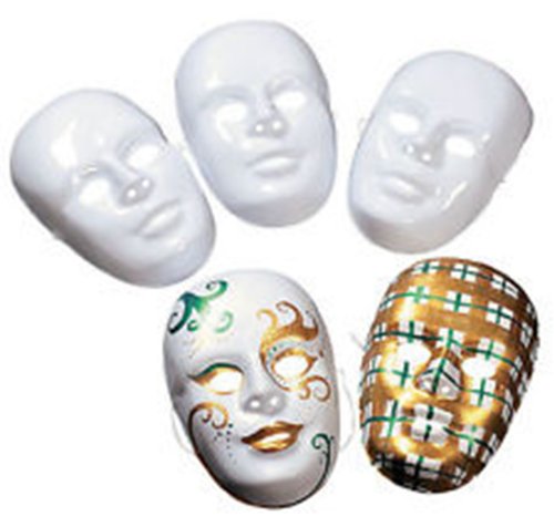 These white masks are ready for decorating and are quite versatile. Use them for costume parties, Mardi Gras or for kids birthday parties. Be a clown, court jester or a harlequin. Each plastic mask comes with an elastic band to hold it in place....