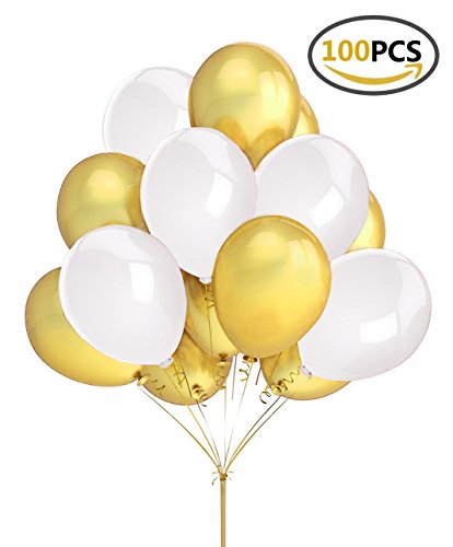Size: 12" Gold and White Assorted color Material: Latex Balloons you can use helium and hydrogen,they will float the balloons perfect decorate your party Size: 12"Gold and White Assorted colorMaterial: Latex Balloonsyou can use helium and...