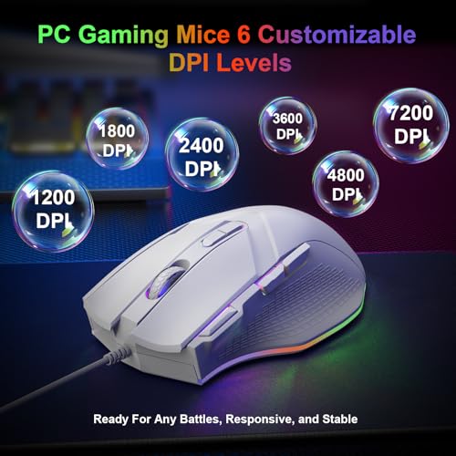 Click for More Images Intelligent Sensitive 6 DPI Levels : LEWENTECH Wired Gaming Mouse Geared with 6 Redefinable DPI Levels (default as: 1200/1800/2400/3600/4800/7200), According user's preference setup different DPI and Rolling Rate suitable...