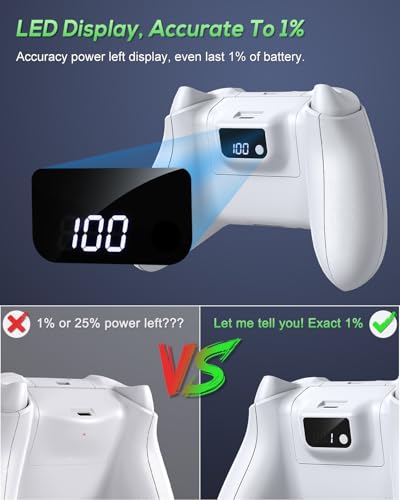 Click for More Images ?Smart LED Digital Display?The latest Yuanhot smart LED digital display rechargeable battery pack for xbox series x/s shows the accurate battery level based on the percentage reading. No more guessing about the remaining...