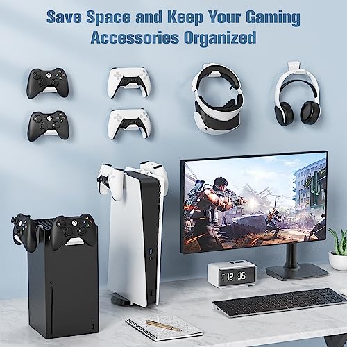 Click for More Images ?Space-saving Design?KUNSLUCK 6-pack controller wall mount helps to easily store your gaming accessories, making your gaming space neater and more space-saving. With a simple installation, you can display the controller and...