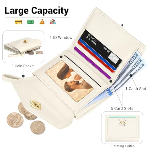 Click for More Images Functional Design: Our small wallet measure 4.5 inches X 3.5 inches X 1 inches; Comes with 5 card slots, 1 cash slot, 1 zipped coin pocket and 1 ID window, this small womens wallet meets all your needs for an everyday small...
