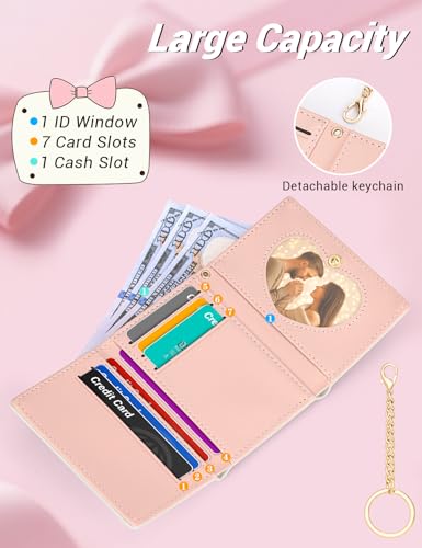 Click for More Images Charming Design: This bow wallet features a lovely pink hue with delicate bow accents, exuding both a feminine charm and elegant sophisticationWallet Cute: The cute bow tri-fold design includes 1 cash compartment, 7 card...