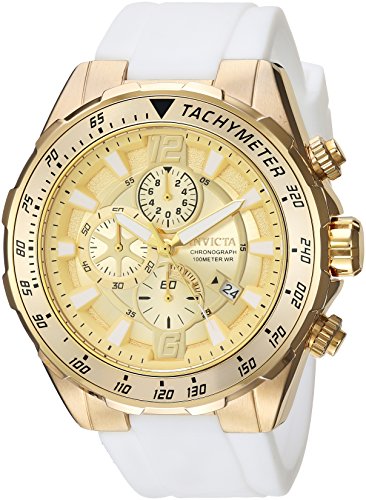 Invicta 20292 Pro Diver chronograph men's watch features a 48mm wide yellow gold plated solid stainless steel case with a unidirectional rotating black bezel and textured push-pull crown with function pushers. Invicta 20292 is powered by an...