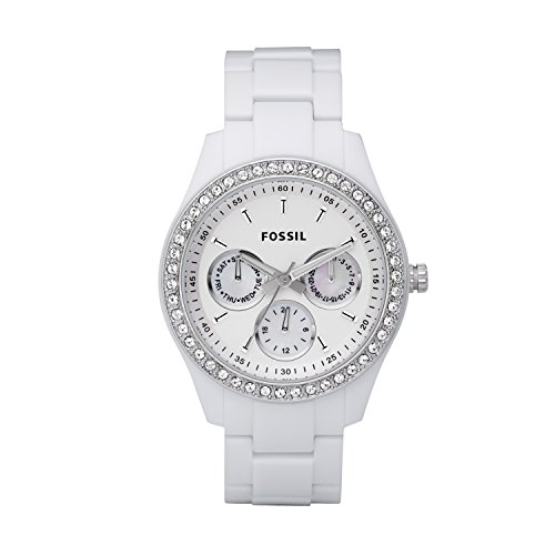 Our boyfriend-inspired Stella watch is part of our all-time favorite collection. With a white acrylic bracelet and a sparkling crystal topring, this eye-catching timepiece will look great on any wrist. This Stella watch also features a...