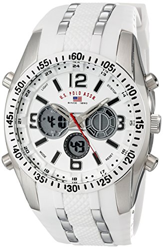 Round watch featuring flag logo, skeleton hands, and a trio of digital subdials at center44 mm metal case with glass dial windowQuartz movement with analog and digital displayFeatures silicone band with silver-tone links and buckle closure,...