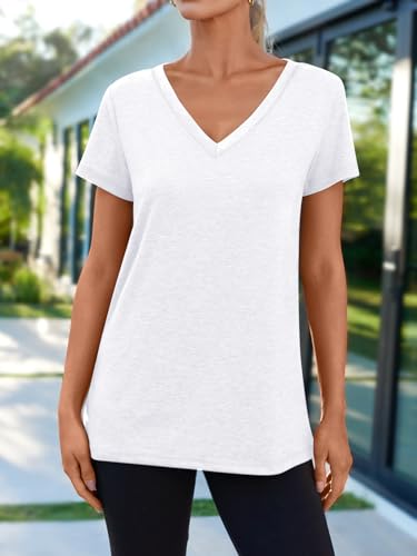 Click for More Images This short sleeve v neck tops is made of 82%Polyester 12%Rayon 6%Spandex, soft, lightweight, breathable, light-stretch, wrinkle-free and skin-friendlyDesign: basic t-shirts, v neck, short sleeve, strechy fabric, solid color,...