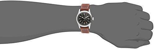 Click for More Images Adjustable black 12mm genuine leather strap fits up to 7.5-inch wrist circumferenceBlack dial with date window at 3 o'clock; full white Arabic numeralsSilver-tone 26mm brass case with mineral glass crystalIndiglo light-up...