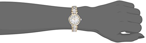 Click for More Images Two-tone 11mm stainless steel expansion band fits up to 7.5-inch wrist circumferenceWhite dial with black full Arabic numerals & gold-tone markersTwo-tone 25mm brass case with mineral glass crystalQuartz movement with analog...