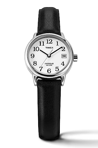 Click for More Images Adjustable black 12 millimeter genuine leather strap fits up to 7.5-inch wrist circumferenceWhite easy-to-read dial with date window at 3 o'clock; Full Arabic numeralsSilver-tone 25 millimeter brass case with mineral glass...
