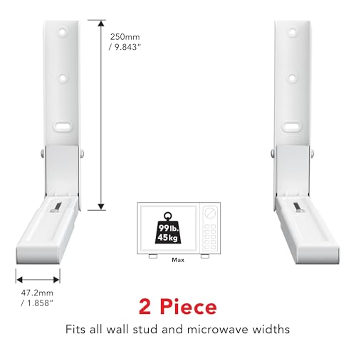 Click for More Images Universal Fit for Most Microwaves – Includes one pair of strong, wall-mounted steel brackets designed to support standard-size microwave ovens; compatible with a wide range of models.Adjustable Arms for Custom Installation...