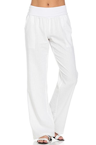 Poplooks Women’s Comfy Fold Over Linen Pants