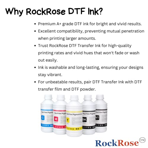 Trust Rock Rose DTF Transfer Ink for high-quality printing rates and dazzling, vivid hues that won’t easily fade or wash out.