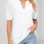 Dokotoo Womens Tops Short Sleeve Lace Tops for Women Trendy 2025 V Neck Sum…