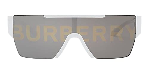 BURBERRY BE 4291 3007/H White Plastic Rectangle Sunglasses Silver Logo Lens