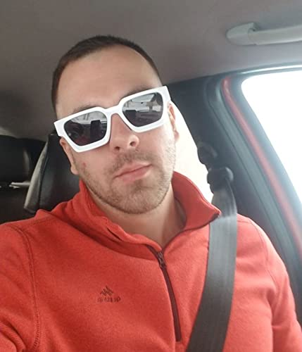 EYLRIM Thick Square Frame Sunglasses for Women Men Fashion Chunky Rectangle Sun Glasses Black Shades(09 White/Grey)