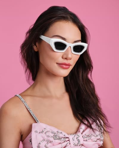 • Party Ready: Our y2k inspired white + rhinestone sunnies are the party accessory you’ve been looking for!