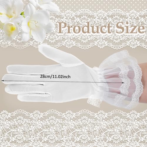 Durable and Comfortable: Crafted from high-quality polyester, these white lace gloves are built to last, offering a soft and comfortable touch that won’t easily deform or break.