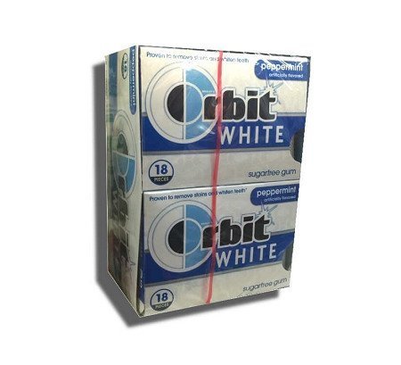 White Peppermint from Wrigley’s. The refreshingly smooth flavor of sugar-free Orbit leaves your mouth with a just-brushed clean feeling. Orbit White also whitens your teeth as you chew, removing stains caused by coffee, tea, soda and more. It has earned the American Dental Association’s Seal of Acceptance for the benefits of -chewing. Buy Orbit now available in its new packaging. 8ct box with 18 pieces per package still 144 pieces of gum.