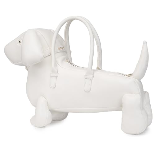 Women Fun Dog Shaped Crossbody Shoulder Bag Handbag PU Leather Unique Novelty Dog Shaped Purse(1 White)