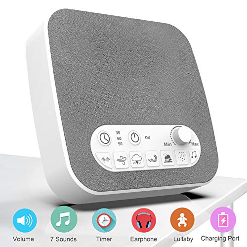 - ? Smoothing Nature Sound: The white noise machine has built-in high quality speaker, equipped with 7 soothing sounds, include white noise, howling wind, thunderstorm, ocean wave, rainforest, summer night, and lullaby. The sound machine can create a peaceful environment for sleep, relaxation, or concentration. Not only it can let you enter sleep state quickly, but also tune out distractions, help you focus your attention on your study or work. The lullaby works great for calming down your baby.