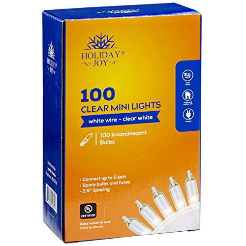 Holiday Joy – Clear White Mini String Lights on White Wire for Christmas Tree Lights – Indoor/Outdoor (100 Lights)